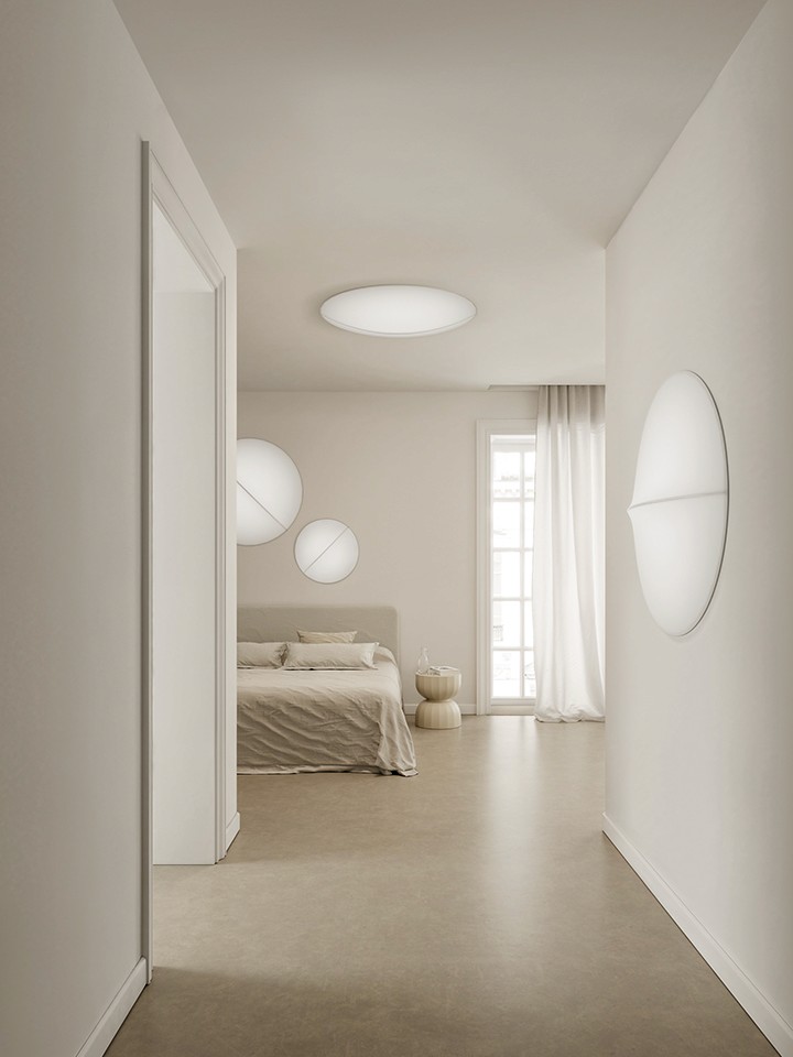 Nelly embodies geometric simplicity, creating a delicate interplay of light and shadow for a sophisticated atmosphere. Its pure form, like a blank canvas, is subtly interrupted by a smooth, linear trace that reveals elegant reflections and details. More than just a lamp, Nelly enhances light, allowing it to dance gracefully on surfaces, transforming any space into a refined and harmonious visual experience.