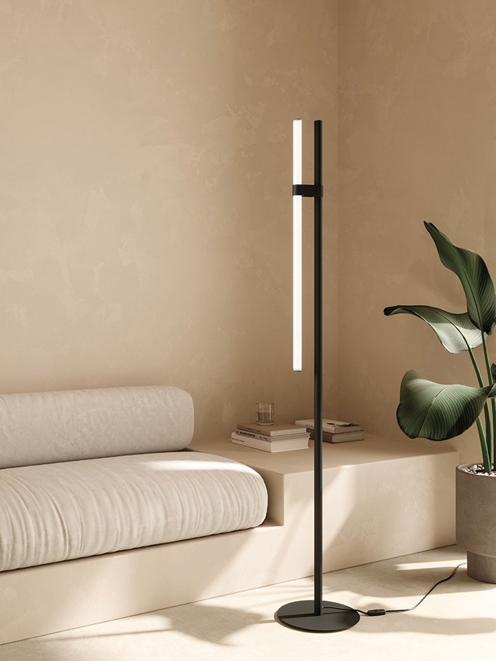 Paralela, a modular system designed by the Spanish Nahtrang Studio, stemmed from a quest to lend shape to light so that the light itself becomes a tangible decorative luminous element. Hence the idea of creating light-filled borosilicate glass cylinders – joined to one another by Nylon PA12 connectors – that use gravity to occupy space in an orderly manner, entering into a visual dialog that becomes a symphony of light. This is a complete and new product family, available in both horizontal and vertical pendant version, table lamp, floor lamp and sconce, in different sizes and five colors.