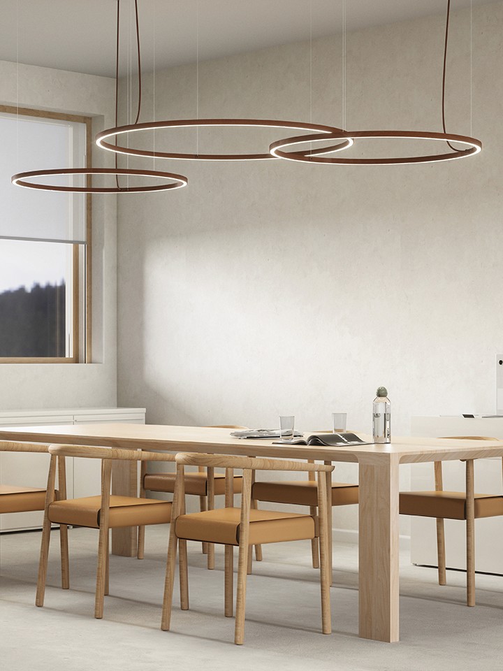 Essential graphic design and intense light. U-light expresses power and luminous efficiency emphasizing the aesthetic essence in a harmonious union that creates a strong presence in the space.