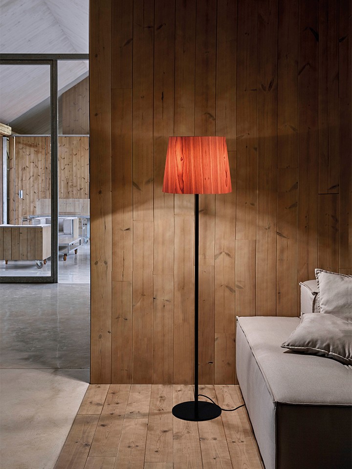 Available in pendant and floor models, Zeta softly illuminates spaces with the warmth of natural wood veneer. Whether hanging gracefully over a bedside table or standing with poise beside a sofa, each version contributes to an atmosphere of calm, comfort, and timeless design.