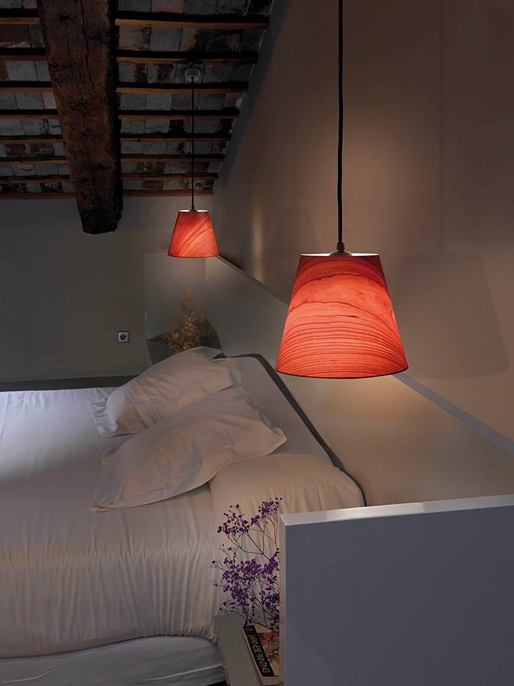 Available in pendant and floor models, Zeta softly illuminates spaces with the warmth of natural wood veneer. Whether hanging gracefully over a bedside table or standing with poise beside a sofa, each version contributes to an atmosphere of calm, comfort, and timeless design.