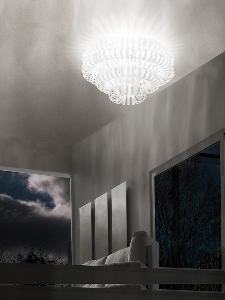One ring, infinite combinations. The concept of the Ecos collection is just in one element: the glass ring. Extremely customizable in terms of shapes and sizes, for a truly original lighting. Rigadin white or crystal colour glass. Metal parts finishing in satin bronze and chrome.