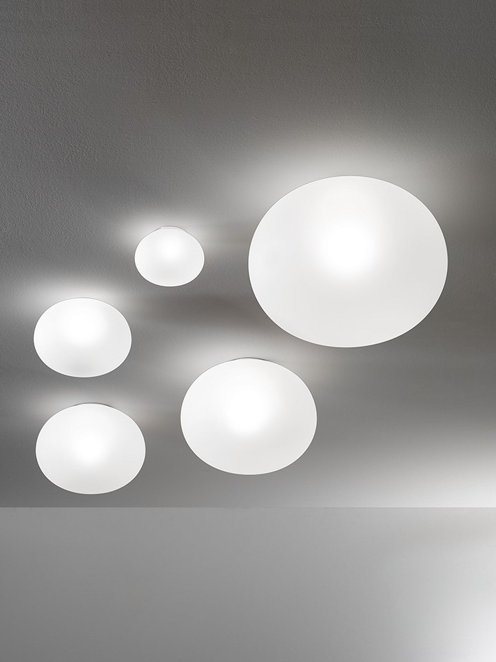 One of our most versatile collections. The oval and mouth-blown satin glass shape is available in different sizes, which can be combined to offer countless installation combinations.