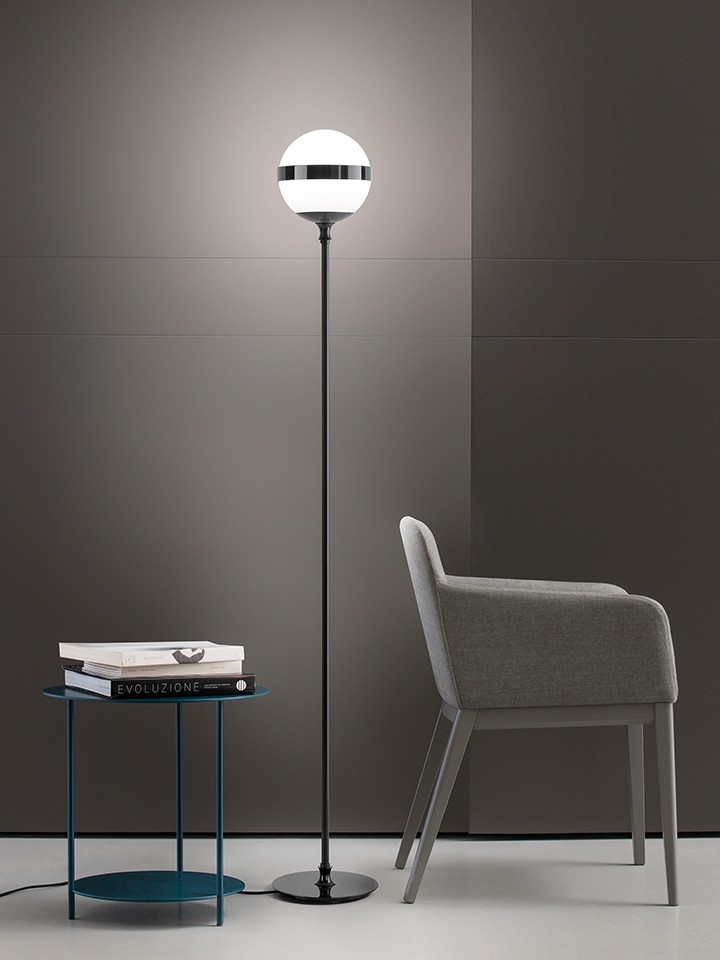 White and black. Peggy was created starting from this chromatic and material polarity. This lighting design combines the lightness of glossy white blown glass, entirely handmade, with the liveliest character of the glossy metal black or antique brass. This effective combination conveys rationality and elegance at the same time.