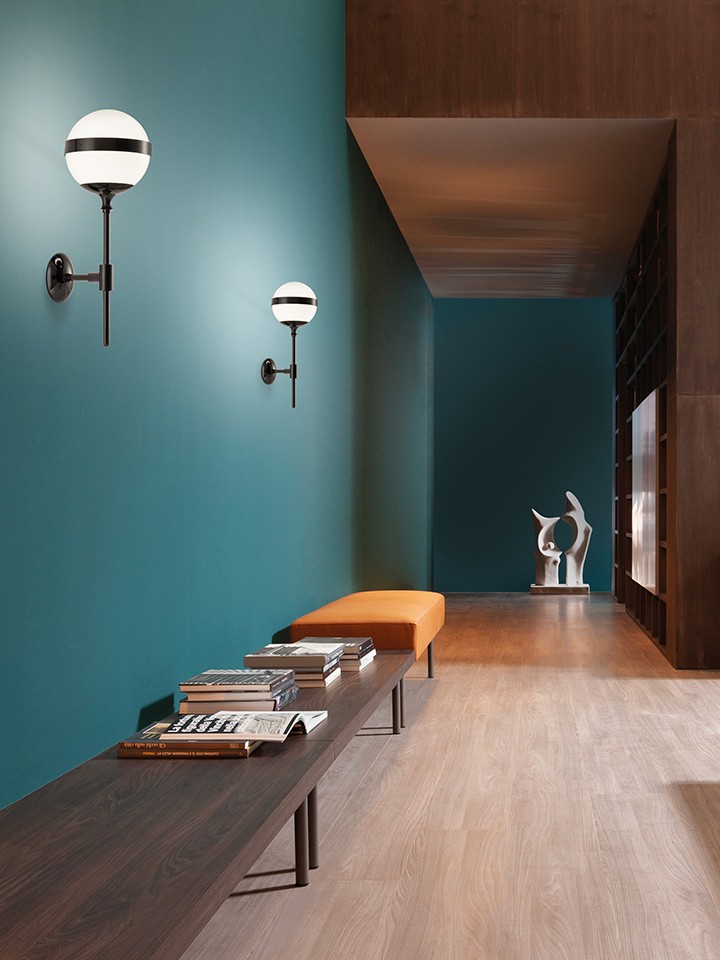 White and black. Peggy was created starting from this chromatic and material polarity. This lighting design combines the lightness of glossy white blown glass, entirely handmade, with the liveliest character of the glossy metal black or antique brass. This effective combination conveys rationality and elegance at the same time.
