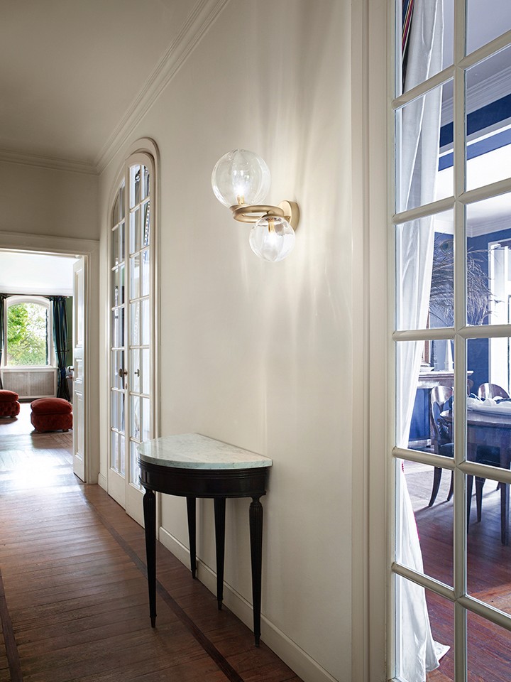 The Puppet Ring collection is based on the idea of creating a frame by combining rings with different diameters, on which crystal balls in three sizes are mounted. Extremely light and elegant, Puppet Ring ethereally combines crystal, smoked, amber and shaded white glass with gold and matt black nickel finishes. The collection has been enriched with two new pendants lamps whose large dimensions make them suitable for large spaces.