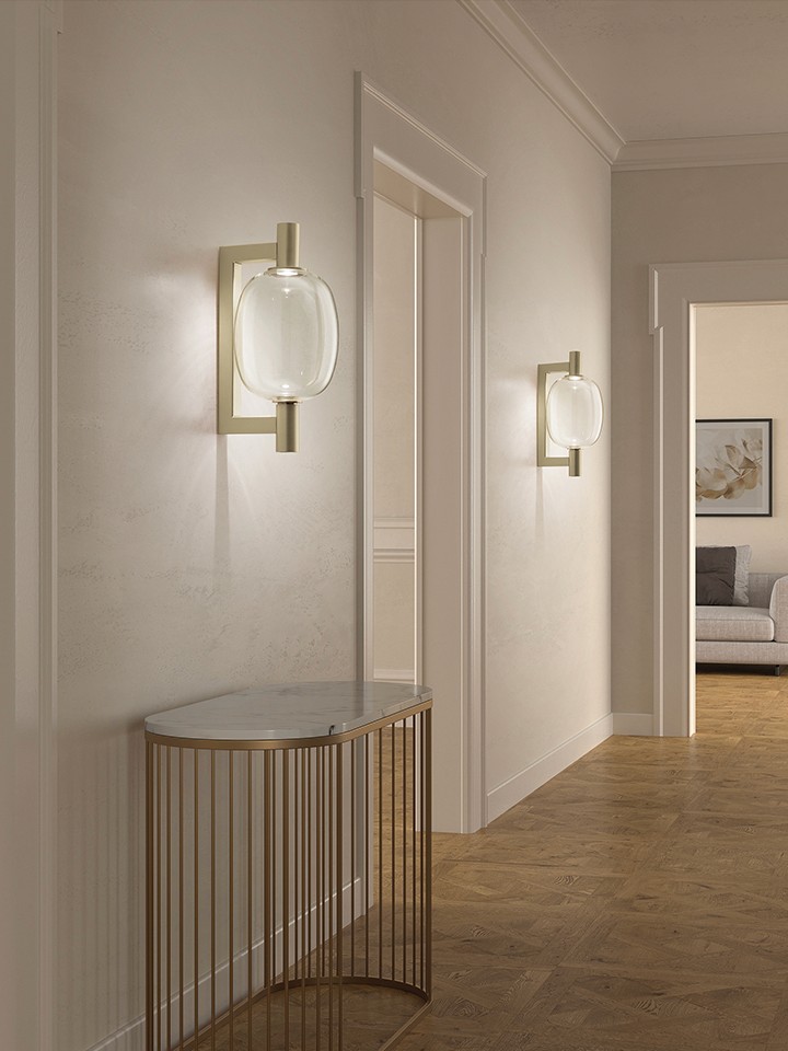 Riflesso, designed by Chiaramonte & Marin for Vistosi, celebrates the purity and lightness of glass through three fluid, bubble-like forms. Its diffusers, available in crystal, pink, amber, or smoked glass, seem to disappear—revealing light as the true protagonist. The pendant’s dual LED source, positioned at both top and base, enhances brilliance and diffusion. Offered in gold or satin copper finishes, Riflesso adapts to any space, from home to office, blending timeless elegance with functional luminosity.
