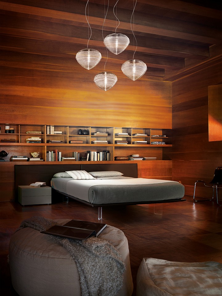 Sprit has the shape of a diamond blown into glass. Its folds are the result of a long process of development that creates a unique light reflection, while keeping the source of light hidden even in the transparent crystal version.