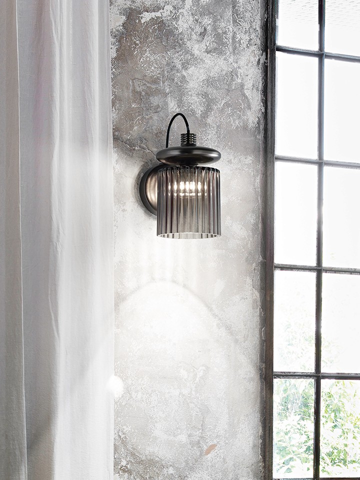 Tread by Chiaramonte & Marin for Vistosi merges industrial charm with artisanal finesse. Its finned metal heat sink and blown glass diffuser evoke vintage electrical design, available in crystal, smoke, burnt earth, or antique green glass paired with copper, gold, or satin bronze finishes. The new pendant version introduces a smooth, wide glass diffuser that replaces the grooved original, offering a modern reinterpretation. With its open base, Tread emits uniform, warm light, creating a bold, avant-garde focal point for any space.