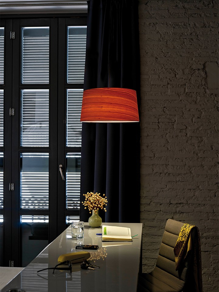 Available in pendant and floor models, Zeta softly illuminates spaces with the warmth of natural wood veneer. Whether hanging gracefully over a bedside table or standing with poise beside a sofa, each version contributes to an atmosphere of calm, comfort, and timeless design.